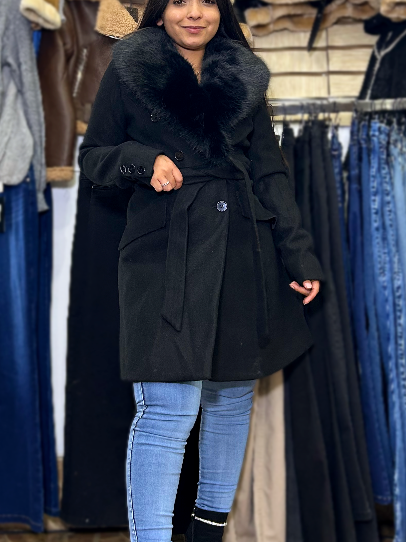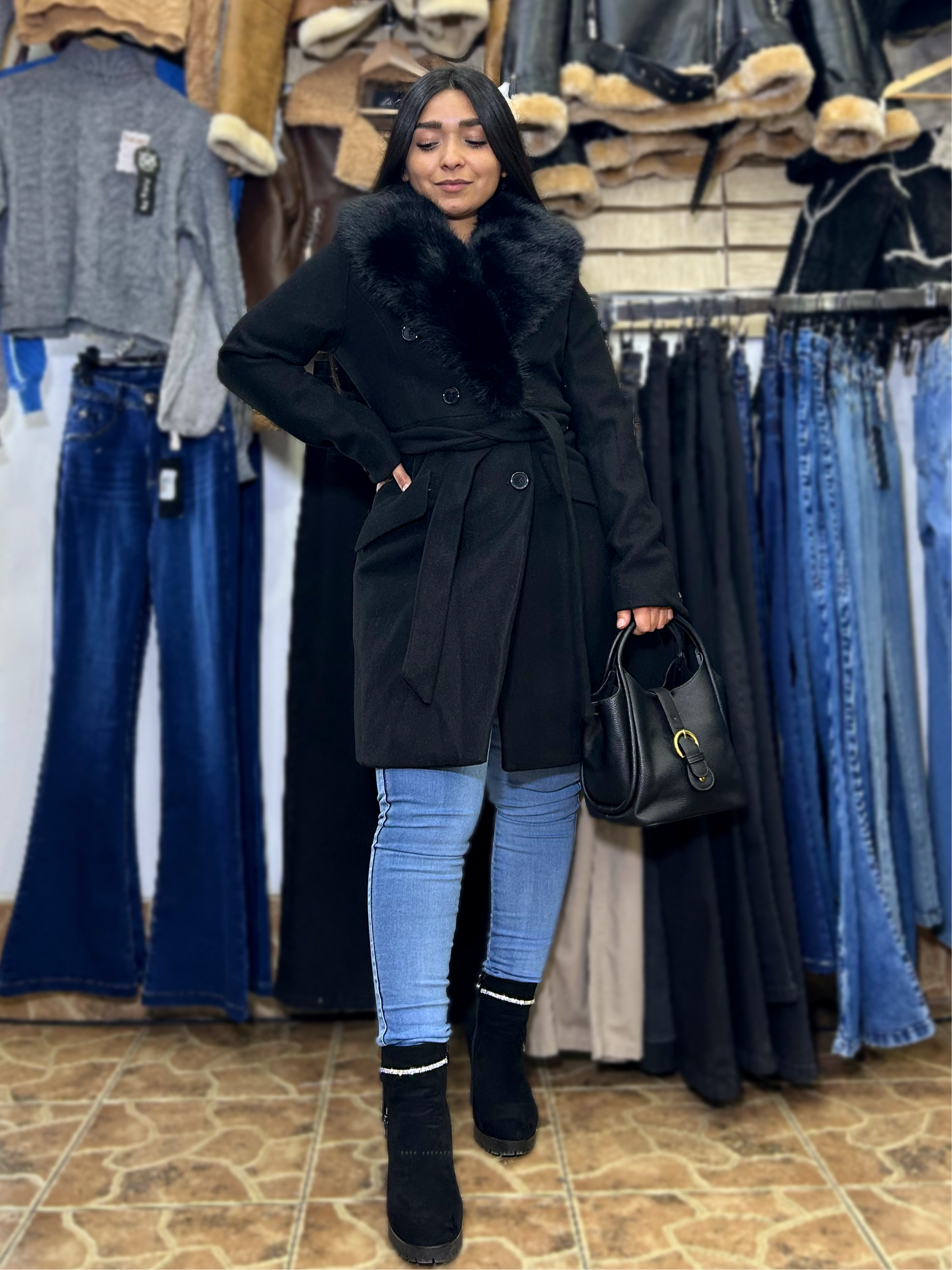 •Abrigo con pelos en el cuello •Pelos desmontables •Excelente calce